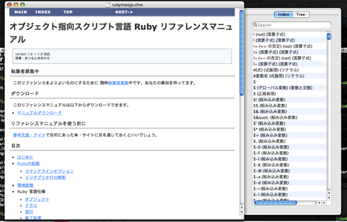 RubyCocoa で chm 読むアプリケーションつくりはじめた
