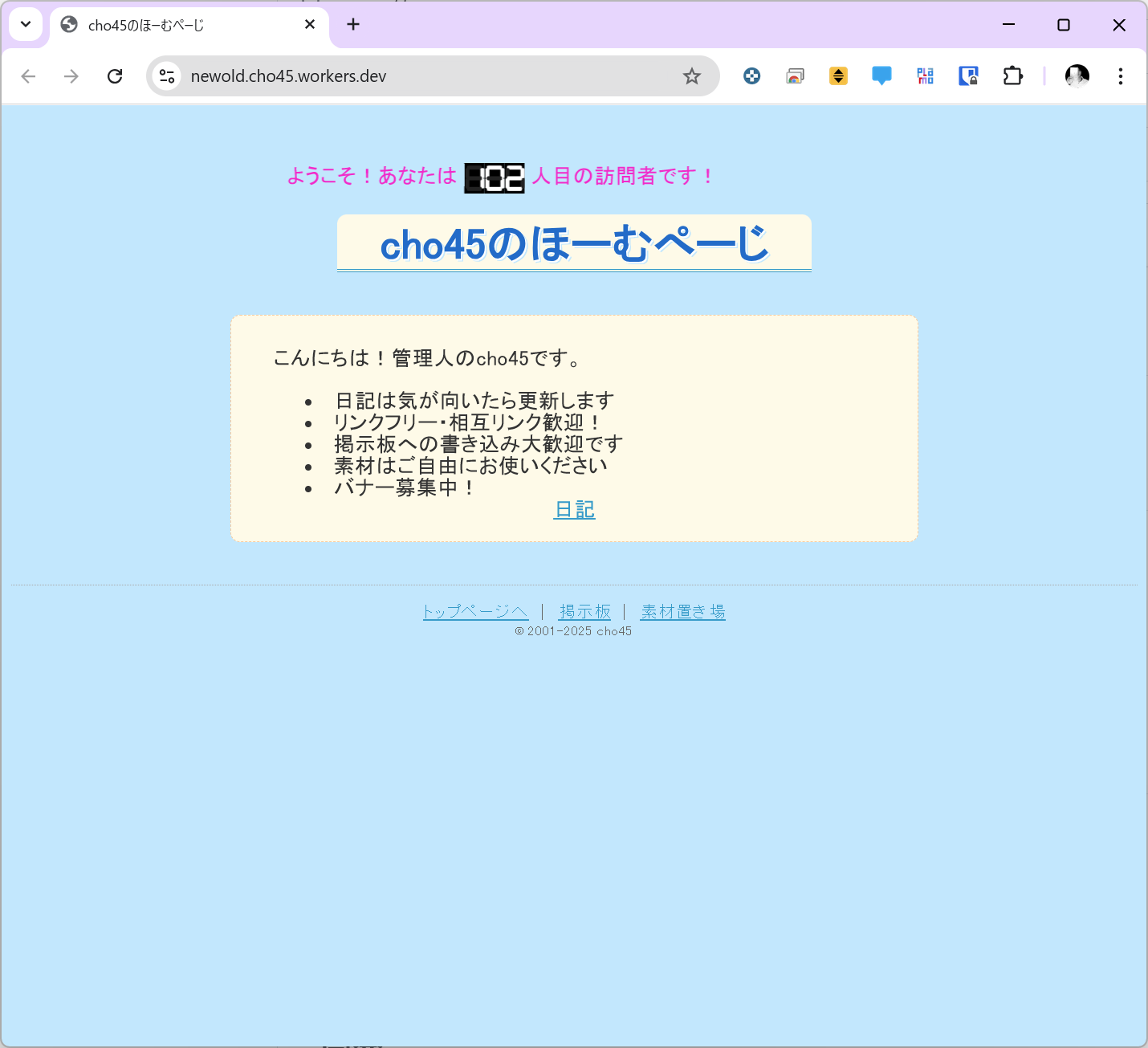いわゆる6hotサイトみたいのは現状の Worker の無料枠で全然問題なかろうという気がするし、そういう意味では現代のジオシティーズなんじゃと思ったのだった。